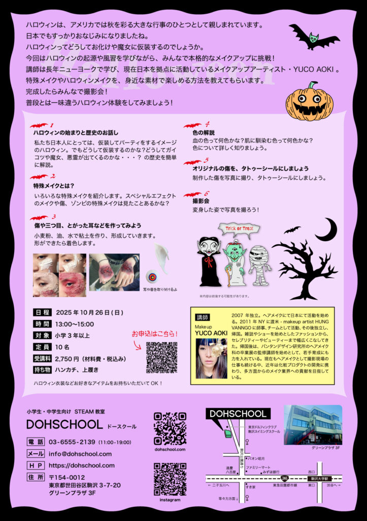 メイクアップアーティスト YUCO AOKI にるハロウィンメイクワークショップ!