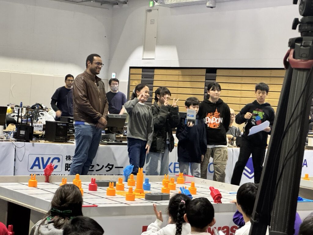 普段教室で、ミドルスクールのチームと一緒に練習をしているので、高得点で難しいギミックにチャレンジします。 それが決勝で決まり、過去最高の84点を叩きだしました! 思いがけぬ高得点にみんな大喜び。