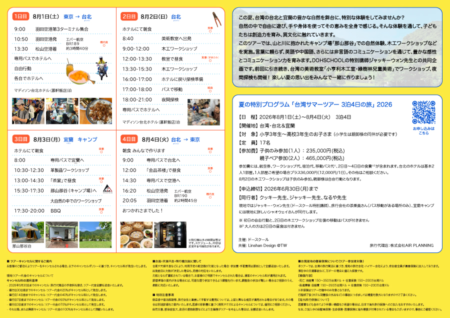 2026年4月27日DOHSCHOOL 特別プログラム 「台湾サマーツアー 3泊4日の旅」 2026